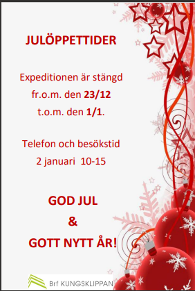 God Jul och Gott Nytt År önskar Styrelsen